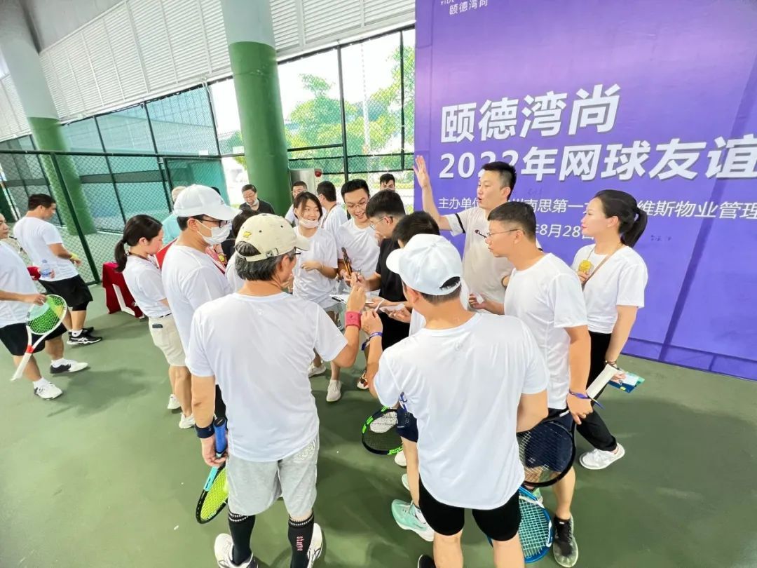 8月28日,颐德湾尚2022年网球友谊赛精彩开打!颐德湾尚2022年·网球友谊赛由广州南思第一太平戴维斯物业管理有限公司主办,旨在丰富颐德湾尚业主的生活,增进邻里之间的情谊,为颐德湾尚业主们搭建更好的共享平台。 打比赛我们很认真 在8月13日至27日比赛前,为丰富颐德湾尚业主对网球技能的掌握,特此配备资深的网球教练,给参赛的颐德湾尚业主们开设了多场专业辅导教学。 全场最亮的仔 选手和颐德湾尚业主们已陆续进场,让我们为今天参赛选手加油助威,奥利给! 迎战盛夏 一触即发 由南思第一太平戴维斯总经理陈伟军先生宣布活动正式开始。 挥洒汗水 挑战自我 一场场酣畅淋漓的精彩对决在球场上接连上演!面对强劲的对手,参赛者们迅速反应,身手敏捷,瞄准适合出击的那一刻,一击即发,赢得现场观众的阵阵欢呼! 非您莫属 由南实公司副总经理张晓芳女士为单人赛得奖者颁奖。 由南思第一太平戴维斯总经理陈伟军先生为双人赛得奖者颁奖。 颐德湾尚2022年网球友谊赛圆满结束,感谢颐德湾尚业主的参与和支持。同时也感谢南思第一太平戴维斯物业为本次活动的组织及策划。